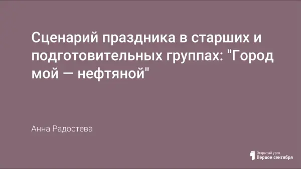 Городу Муравленко всего 23 года. Расположен он на Крайнем Севере, в Ямало-Ненецком автономном округе. В нашем детском саду существует ежегодная традиция проводить праздники в честь Дня города и Дня нефтяника, главная цель которых — знакомить детей с городом, где они живут.