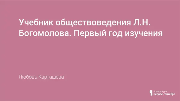 Дается попытка анализа учебника по обществоведению Л.Н. Богомолова и возможные затруднения на первом году обучения обществоведению.