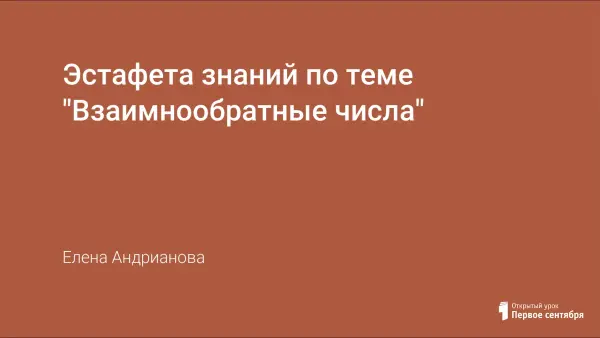 Урок проходит в форме эстафеты знаний, в течение которой команды преодолевают постепенно усложняющиеся этапы, показывая арбитрам (гостям урока) свои знания по изученной теме. В ходе испытаний учитель - главный арбитр выполняет функцию координатора и направляющего, который корректирует знания обучающихся и устраняет выявленные пробелы. Для привлечения ребят к предмету и обеспечения наглядности на уроке используется презентация, разработанная средствами Microsoft PowerPoint. Для проведения данного урока необходимо изучить тему "Взаимно обратные числа", предварительно познакомиться с презентацией и её особенностями (используются макросы и средства анимации), а также подготовить раздаточные материалы.