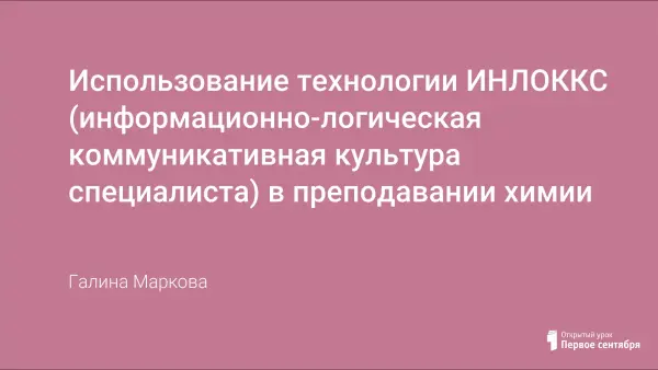 Методы технологии ИНЛОККС на уроках химии