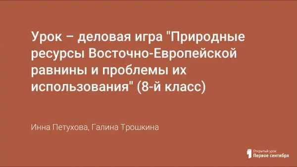 Урок – деловая игра "Природные ресурсы Восточно-Европейской равнины и проблемы их использования" (8-й класс)