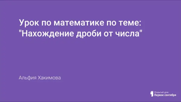 Урок по теме "Нахождение дроби от числа" является заключительным. Учащиеся повторяют и обобщают полученные знания, умения, навыки по данной теме. Решают задачи в устной и письменной форме коллективно или индивидуально. Выполняется контроль знаний в форме диктанта. Учащиеся повторяют ранее изученный материал, необходимый для изучения новой темы.