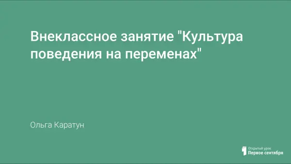 Основная задача занятия — усвоение норм поведения на переменах. Обучение детей самооценке и самокоррекции поведения.