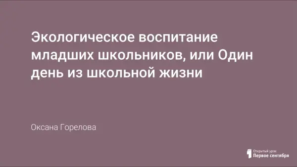 Уже у младших школьников должны быть сформированы обобщенные представления об окружающем мире, о связях между предметами и явлениями природы. Дети вместе с учителем наблюдают, изучают явления природы, и у ребят формируется бережное отношение к ней. Ключевая идея работы учителя — воспитание у ребенка чувства прекрасного, чувства гармонии человека и природы, сопричастности его окружающему миру.