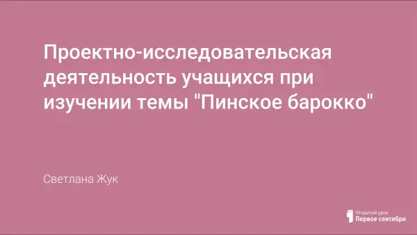 Одной из активных форм педагогических технологий, развивающих высокую мотивацию к учебно-познавательной деятельности, являются проектные технологии. Культурное наследие Пинщины, которое включает многочисленные архитектурные постройки от эпохи Возрождения до наших дней, - это большой выбор тем для проекта по предмету «МХК» в школе.