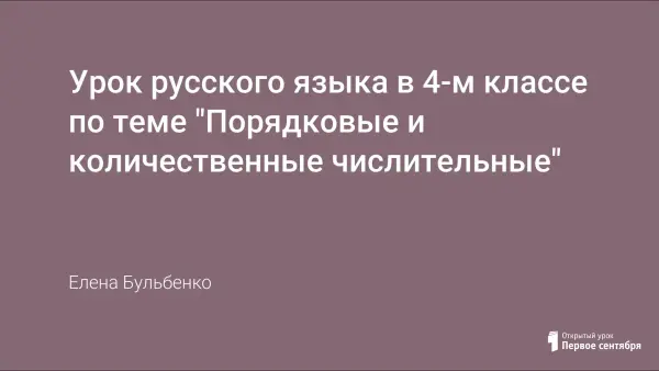 Представленный урок русского языка в 4-м классе по учебнику Соловейчик "Русский язык. К тайнам нашего языка" УМК "Гармония" знакомит учащихся с разрядами имен числительных. Это второй урок в теме "Имя числительное". На уроке используются разные приемы проверки и оценки деятельности детей.