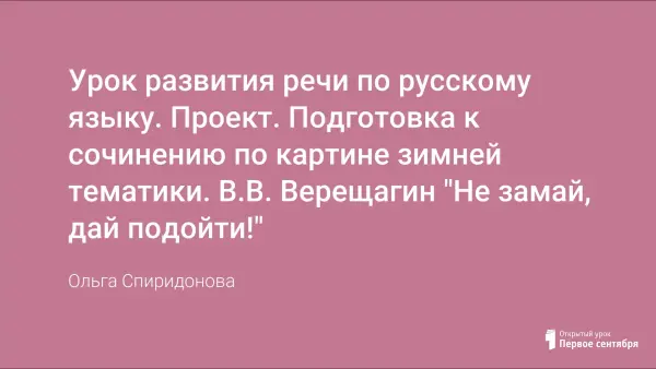 Урок обобщает знания особенностей текста-описания, расширяет знания о художниках, развивает умения и навыки создания текста - описания произведения живописи с изображением природы и человека, подготовки сообщения по дополнительной литературе; воспитывает чувство гордости за талантливый русский народ, умеющий защищать страну.