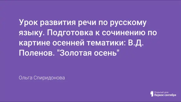 Подготовка к сочинению – описанию картины В.Д. Поленова "Золотая осень" в форме проекта. Урок обобщает знания особенностей текста описания, расширяет знания о художниках, развивает умения и навыки создания текста – описания произведения живописи с изображением природы; воспитывает чувство восхищения вечно прекрасной природой, уважения к художнику, создающему произведение живописи.
