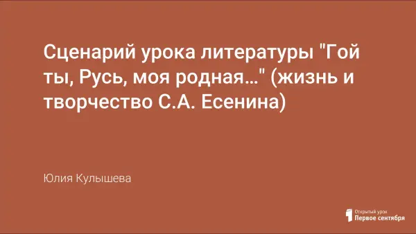 Задачи урока: сделать выводы о своеобразии раскрытия темы Родины в лирике поэта; рассмотреть особенности художественного мира поэта; развивать художественный вкус, воспитывать любовь к поэзии, интерес к творчеству С.А. Есенина.