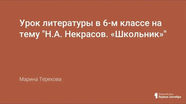 Продолжается изучение темы "Подросток в литературе XIX века"; учащиеся знакомятся со стихотворением Н.А. Некрасова "Школьник", работая в группах, исследуют тексты русских писателей и картины живописцев XIX века. Все это делается для того, чтобы выяснить, как в литературе и живописи XIX века отражена тема крестьянского детства. Какое место эта тема занимает в лирике Н.Некрасова.