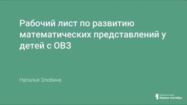 Представлен рабочий лист по развитию математических представлений у детей с ОВЗ.