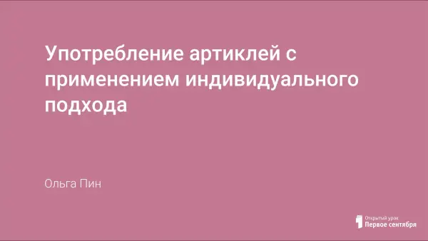 Разработка урока в 9-м классе по употреблению артиклей (в частности, с географическими названиями), в подготовке которого автор стремился максимально полно реализовать индивидуальный подход. Для этого применены уровневая дифференциация, объяснение материала подготовленными учащимися, разнообразие форм работы и др. приемы. В приложении теоретически изложены представления о значении и формах реализации индивидуального подхода, часть которых практически воплощены в уроке.