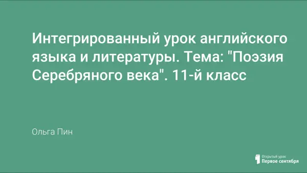 На интегрированном уроке английского языка и литературе, посвященном поэзии Серебряного века, речь изучается культура России начала XX века, духовный кризис нации, возникновение новых взглядов на мир в обществе, футуризм, акмеизм, символизм. Выпускники читают стихи Александра Блока, Игоря Северянина, Сергея Есенина, Анны Ахматовой.