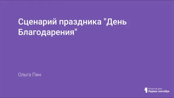 Внеклассное мероприятие посвящено американскому национальному празднику ‒ День Благодарения. В ходе мероприятия ребята познакомятся с историей праздника, традициями празднования в США.