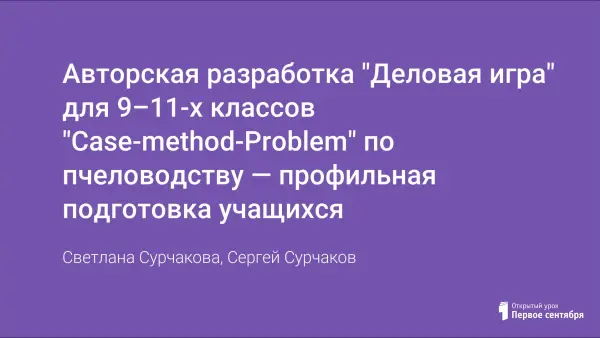 Авторская разработка "Деловая игра" для 9–11-х классов "Case-method-Problem" по пчеловодству — профильная подготовка учащихся