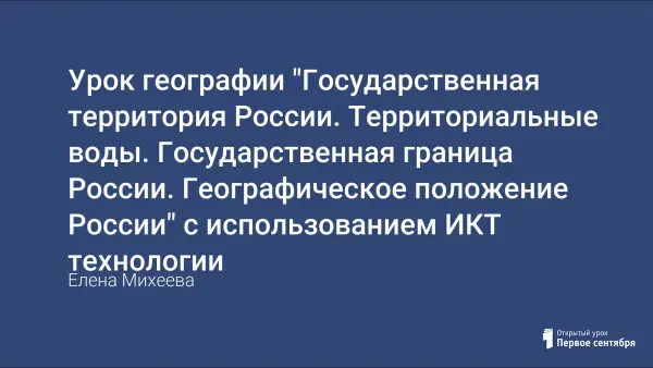 Цель урока: создать условия для освоение новых знаний о государственной территории России, территориальных водах, государственной границе и географическом положении страны.
