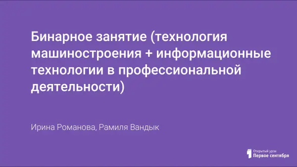 Бинарное занятие (технология машиностроения + информационные технологии в профессиональной деятельности)