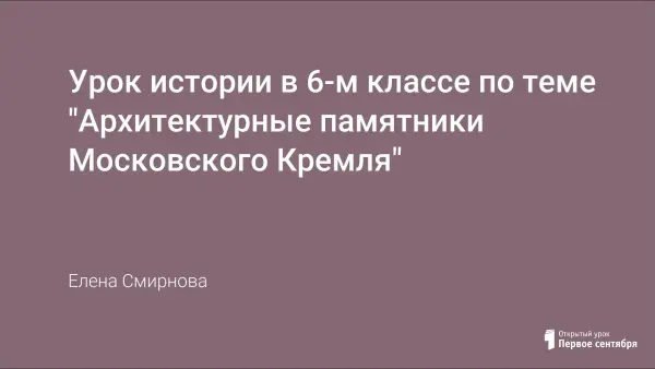 Урок истории, цели которого ознакомить учащихся с развитием русской архитектуры в XV–XVI веках, воспитывать любовь к прекрасному, уважение к архитектурным памятникам, развивать логическое мышление учащихся.