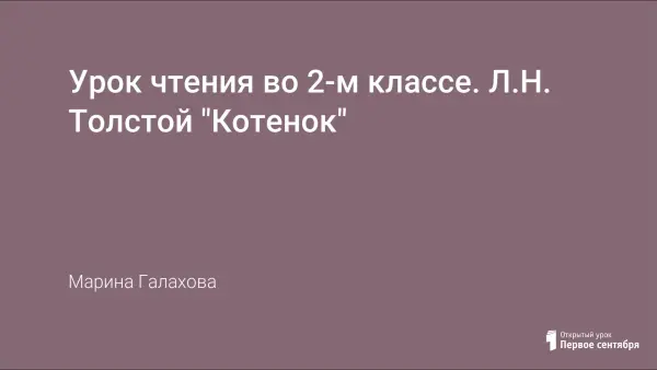 Урок знакомит с творчеством Л.Н. Толстого, с произведением «Котёнок». Развивает речь учащихся. Воспитывает бережное отношение к животным.
