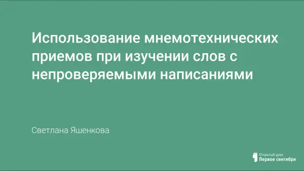 Для запоминания написания словарных слов я использую мнемотехнические приёмы «цепочка» и «буквы-образы», сущность которых заключается в следующем: группа слов объединяется сюжетом, каждое слово соединяется с соседними, как звенья цепочки, при помощи ассоциативных образов.