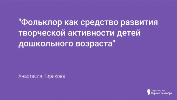 Предлагаемый материал повествует о развитии творческой активности детей дошко-льного возраста через ознакомление с разными видами фольклора, приобщения к русским народным традициям и обрядам.