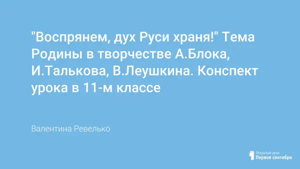 Цель: познакомить учащихся с творчеством И.Талькова и В.Леушкина; воспитывать в детях чувство патриотизма; показать, какое место занимает Россия в творчестве каждого поэта.