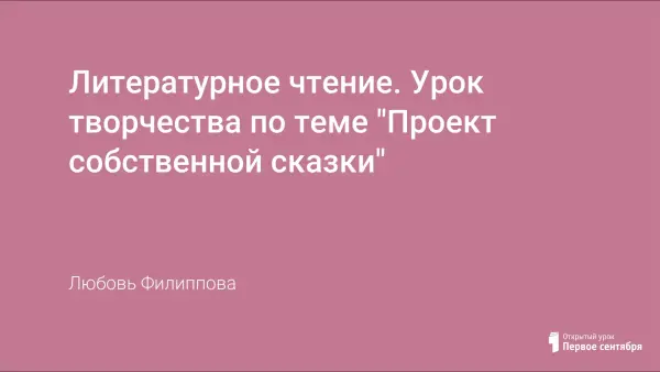 Литературное чтение. Урок творчества по теме "Проект собственной сказки"
