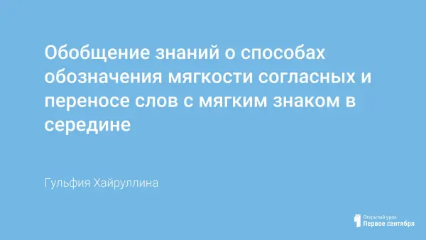 Урок по русскому языку по традиционной программе. Он позволяет систематизировать знания учащихся по теме «Обозначение мягкости согласных и перенос слов с мягким знаком в середине слова». На уроке используется как вспомогательный зрительно-наглядный элемент, так и творческие задания. Развивается речь и мышление учащихся.