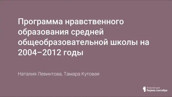 Программа нравственного образования средней общеобразовательной школы на 2004–2012 годы