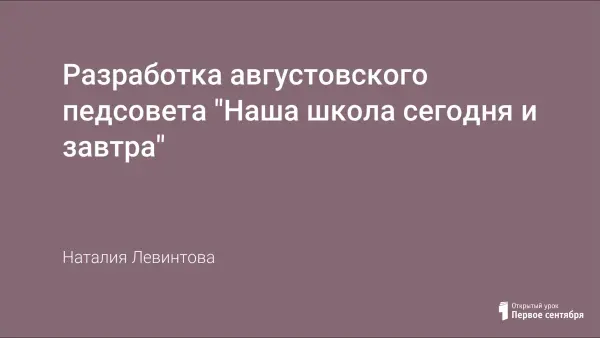 В разработке приводятся цели педсовета, на котором педагоги школы знакомились с основными идеями и стратегией развития отечественного образования по материалам программы «Столичное образование-5», конференции «Современная школа сегодня и завтра» (2009 г., май) и национальной образовательной инициативы «Наша новая школа».