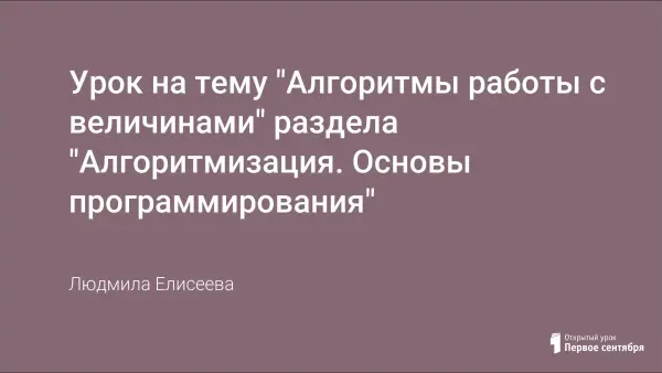 Урок на тему "Алгоритмы работы с величинами" раздела "Алгоритмизация. Основы программирования"