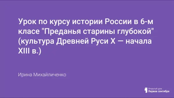 Урок сочетает в себе знания из разных областей и должен познакомить учащихся с лучшими произведениями русской культуры; выяснить, в чем заключаются особенности древнерусской культуры; воспитывать патриотическое отношение к своей Родине; развить умение анализировать текст и делать выводы.