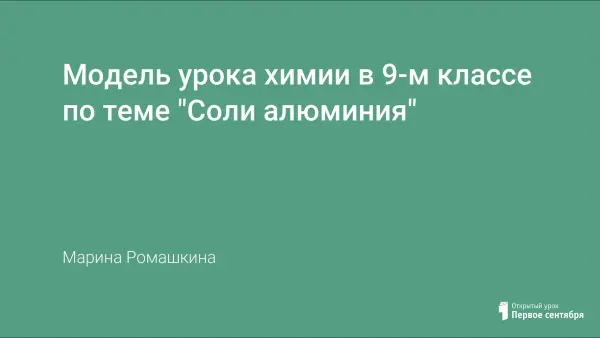 Модель урока химии в 9-м классе по теме "Соли алюминия"