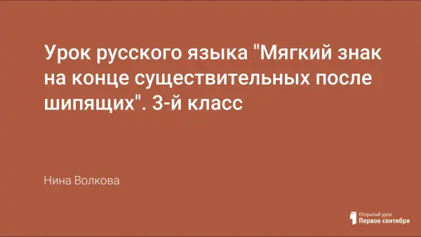 На уроке русского языка учащиеся вовлекаются в планирование и осуществление учебного процесса. Дети учатся рассуждать, обосновывать, доказывать правильность своих выводов, развивают речь, логическое мышление, в работу включаются важнейшие интеллектуальные качества детей. На уроке дети учатся работать по алгоритму для правильного написания мягкого знака у существительных после шипящих. На уроке предлагаются задания базового и повышенного уровня сложности.