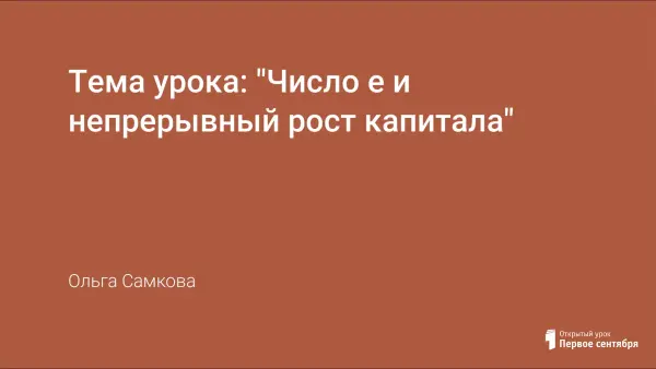 Цели урока: обеспечить применение учащимися полученных знаний о сложных процентах, числе е при многократном начислении процентов в течение одного года; создать условия для развития у школьников умений сравнивать, обобщать, делать выводы; содействовать развитию у школьников умений использовать научные методы познания: наблюдение, гипотеза; побудить к активному познанию окружающей действительности, к осмыслению и нахождению причинно - следственных связей, к развитию логики, мышления, коммутативных способностей.