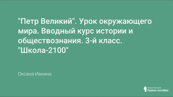 Урок окружающего мира в 3-м классе, на котором формируется образ преобразований Петра I как решительного изменения всех форм общественной и государственной жизни. Использование ИКТ на уроке позволяет учащимся в яркой, интересной форме работать с терминами, понятиями, анимированными картами, видеть исторический материал в видеороликах и на фотографиях.