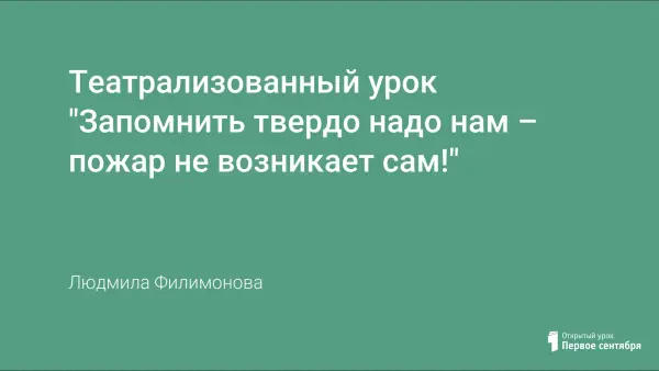 Старшеклассники уже далеки от того возраста, когда верят в сказки, но они не должны забывать народную мудрость: «Сказка ложь, да в ней намек - добрым молодцам урок!». Этот урок заставляет задуматься о том, что наша жизнь не сказочное театрализованное действие, которое развивается по определенному сценарию и может быть остановлено в любой момент. Чтобы сохранить свое здоровье и жизнь, надо хорошо знать и своевременно устранять причины пожаров.