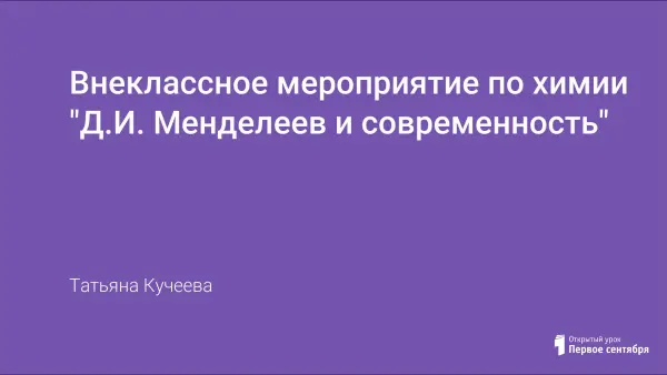 Урок химии на тему «Д.И. Менделеев и современность» воспитывает у учащихся отношение к химии как к одному из фундаментальных компонентов естествознания и элементу общечеловеческой культуры.