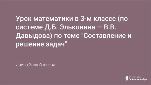Урок математики в 3-м классе (по системе Д.Б. Эльконина — В.В. Давыдова) по теме "Составление и решение задач"