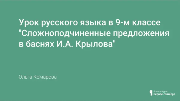 Урок русского языка в 9-м классе проводится с целью обобщения материала по теме «Сложноподчиненные предложения». Для этого мы обращаемся к творчеству И.А. Крылова, в чьих произведениях встречается много сложных синтаксических конструкций. Использование сложноподчиненных предложений помогает автору донести мораль до читателей. Анализируя его произведения, учащиеся самостоятельно создают конструкции заданных типов.
