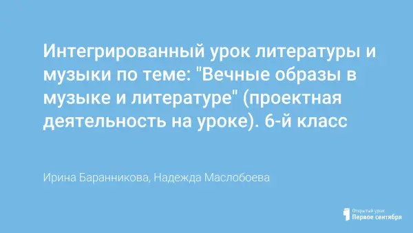 Интегрированный урок литературы и музыки по теме: "Вечные образы в музыке и литературе" (проектная деятельность на уроке). 6-й класс