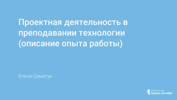Открытый урок на тему «Проектная деятельность в преподавании технологии» направлен на решение вопросов активизации познавательной деятельности у учащихся 5–11-х классов.