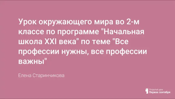 Примером использования некоторых приёмов может служить урок окружающего мира по теме: «Все профессии нужны, все профессии важны», проведённый во 2-м классе, конспект которого я предлагаю для рассмотрения.