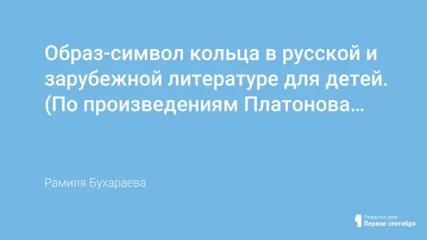 Народная волшебная сказка — богатейшая по своей нравственной и художественной силе основа для создания авторских сказок. Созвучность основных тем сказок в произведениях Платонова и Шергина "Волшебное кольцо" и трилогии "Властелин колец". Волшебное кольцо как художественная деталь, раскрывающая проблему выбора жизненного пути в произведениях Платонова, Шергина и Толкиена.