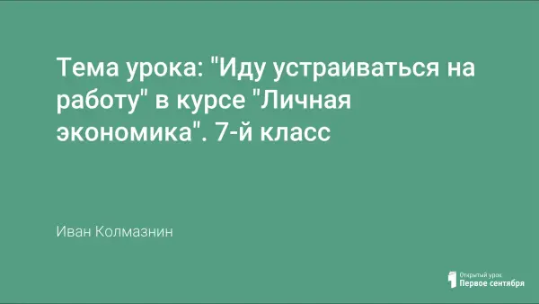 Урок по курсу «Личная экономика» по теме «Иду устраиваться на работу» для учащихся 7-х классов является закреплением, повторением и логическим завершением пройденного материала по темам: «Искусство общения», «Выбор профессии», «Карьера», «Секреты успеха», «Жизнь замечательных людей», «Как найти работу», «Как устроиться на работу».