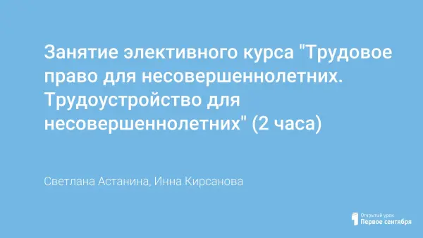 Занятие элективного курса "Трудовое право для несовершеннолетних. Трудоустройство для несовершеннолетних" (2 часа)