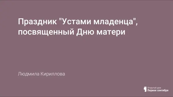 Семейный праздник проводится в форме заседания семейного клуба. Праздник способствует укреплению семейных традиций, приобщает детей и их родителей к совместному времяпрепровождению, создаёт условия для воспитания любви к матери и отцу. На мероприятии представлена премьера театральной миниатюры "Устами младенца". Постановка посвящена Индии. Дети представляют индийские танцы и сказки.