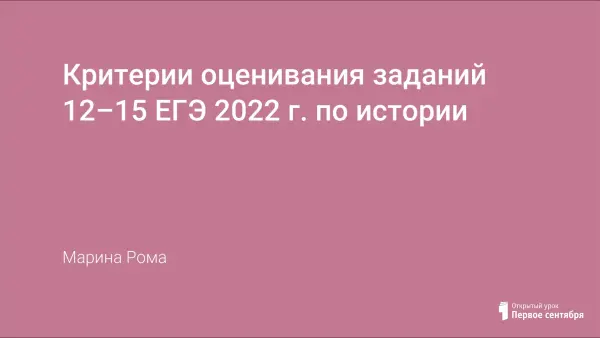В презентации представлены критерии оценивания заданий 12–15 ЕГЭ 2022 г. по истории.
