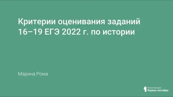 В презентации представлены критерии оценивания заданий 16–19 ЕГЭ 2022 г. по истории.