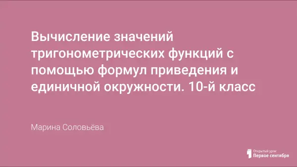 Дидактическая цель урока - это создание условий для осмысления и закрепления формул приведения, использование мнемонического правила для этих формул, а так же формирование умений и навыков применения единичной окружности для вычисления значений синуса, косинуса, тангенса углов. Достижению цели способствует сочетание научности и доступности материала, его проблемное изложение.